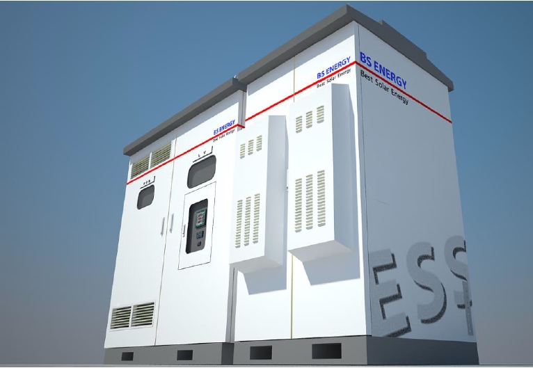 태양광발전소 연계형 ESS는 발전소 부지 및 건축 인허가상에 어려움을 해결하고자 일체형 캐비넥 스타일로 제작한다. 케비넷은 PCS & LV 용과 Battery rack 용 으로 나누어진다.