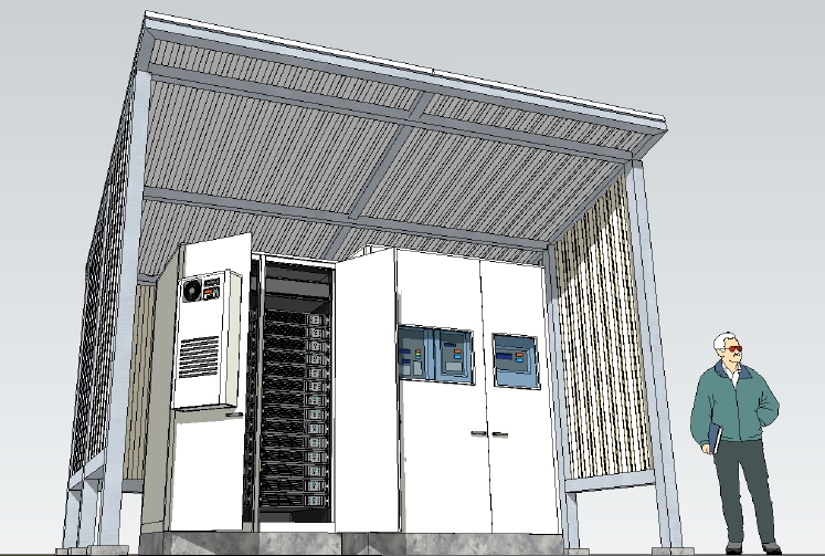 일체형 ESS 설비에 태양 그늘 막 설치 및 태양광 설치로 소내 전력(냉난방기기의 전력을 절감 시킬 수 있다.