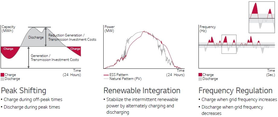 그리드를 안정화시키기 위해 그리드 스케일 배터리는 피크 시프 팅, 재생 가능 통합 및 주파수 조정과 같은 기능을 제공합니다. LG 화학은 세계 최고의 리튬 이온 배터리 기술로 그리드 스케일 ESS 애플리케이션을 위한 고급 배터리 시스템을 제공합니다.